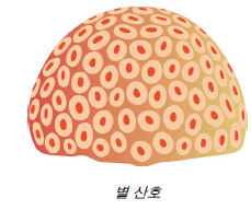 꽃망울이 터지는 듯이 열리면서 바위나 다른 단단한 물체에 바싹 달라붙는 종류는 별 산호(star coral)이다. 별산호도 바다에서 흔히 볼수 있는 산호 이며 매우 다양한 종류가 있다.