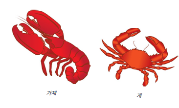 있다. 게, 가재, 새우 등이 갑각류에 속한다. 이들의 특징은 여러 개의 관절을 가진 다리와 외부의 골격 등이