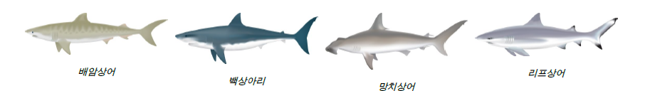 상어는 빠르고 강력하고 수중에서 피냄새를 맡으면 잘 흥분한다. 상어가 피로 인해 자극을 받고 흥분한다는 이런 사실을 알고 영화나 다큐멘터리 제작자들이 무시무시한 상어에 대한 왜곡된 전설을 만들어 내기 시작했다. 당신은 길이 잘 들여진 상어까지도 물속에 밑밥(고기, 내장, 피가 가득한 버킷)을던져넣어서 예측할 수 없는 반응을 만들 수 있다. 사람이 없고 자연의 환경이 잘 보존된 곳에서의 상어는 우아하고 겁이 많고 갑작스러운 움직임이 감지되면 놀라 도망가기도 한다. 상어와 함께 수중에서 유영할 수 있다는 것은 다이버만의 특권이라고 할 수 있다. 가장 일반적으로 볼 수 있는 상어가 가장 덜 공격적이다. 너스 상어와 샌드 상어가 이들에 속한다. 조금 더 공격적인 것에는 배암 상어나 백상아리, 청상아리와 귀상어 등이 있다.
