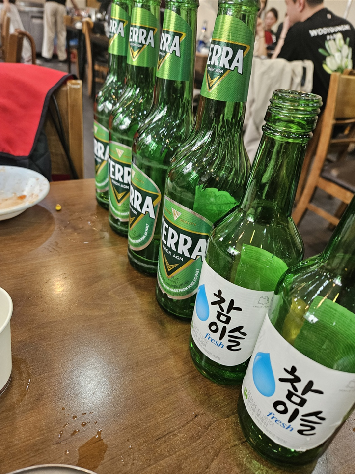 소맥과 함께 한다.. 그러다 반쯤 덜 남은 낙지볶음을 같이 넣고 볶아서 함께 먹는다.