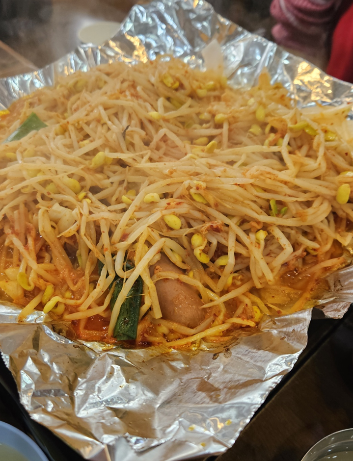 익힌 콩나물베이컨소세지과 낙지볶음을 따로 먹다가 계속 콩나물을 추가해서 넣고 익히면서