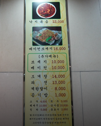 항상 [ 낙지볶음 + 베이컨 쏘세지 + 쏘세지 추가] + 양념 많이 ㅋㅋㅋㅋ(우린 매운걸 좋아하니까,,,)