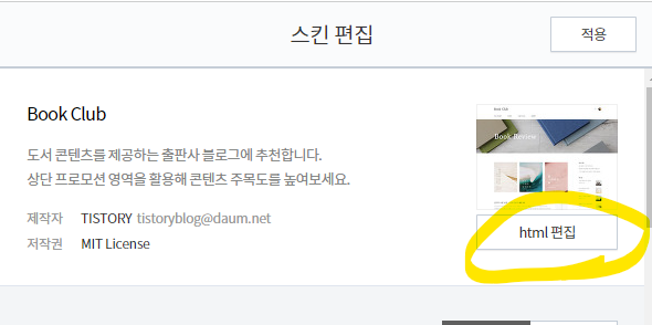 5) 블로그 관리로 돌아가서 "꾸미기 - 스킨편집 - httml편집"으로 들어간다.