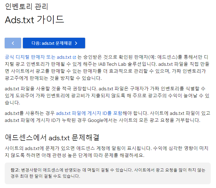 결론은 ads.txt 파일이 없으니 만들어라, 파일을 만들때 들어가야 하는 내용은 친절히 에드센스에서 알려준다.