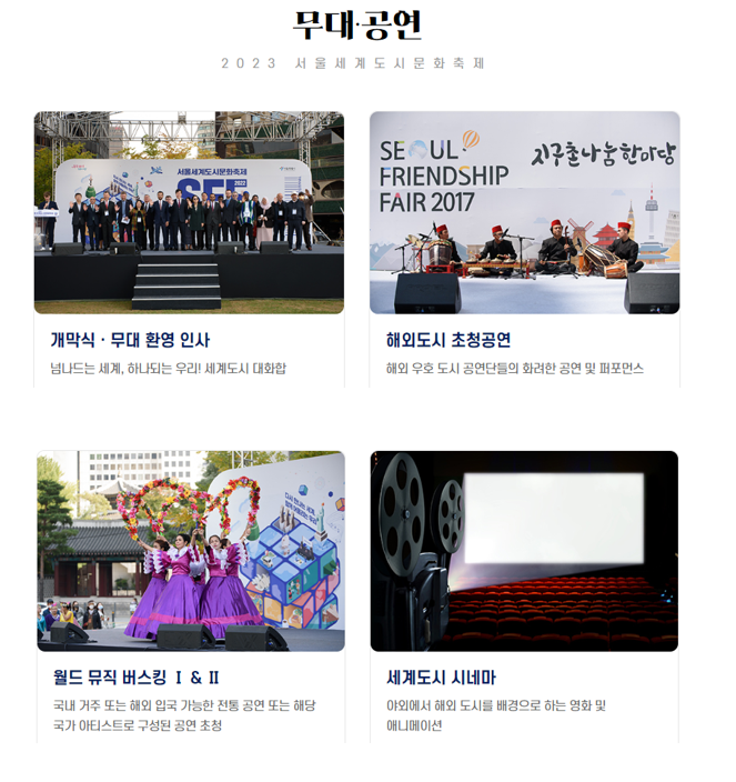 축제기간에 다양한 전시 및 체험, 공연등의 볼거리 즐길거리가 있다.
