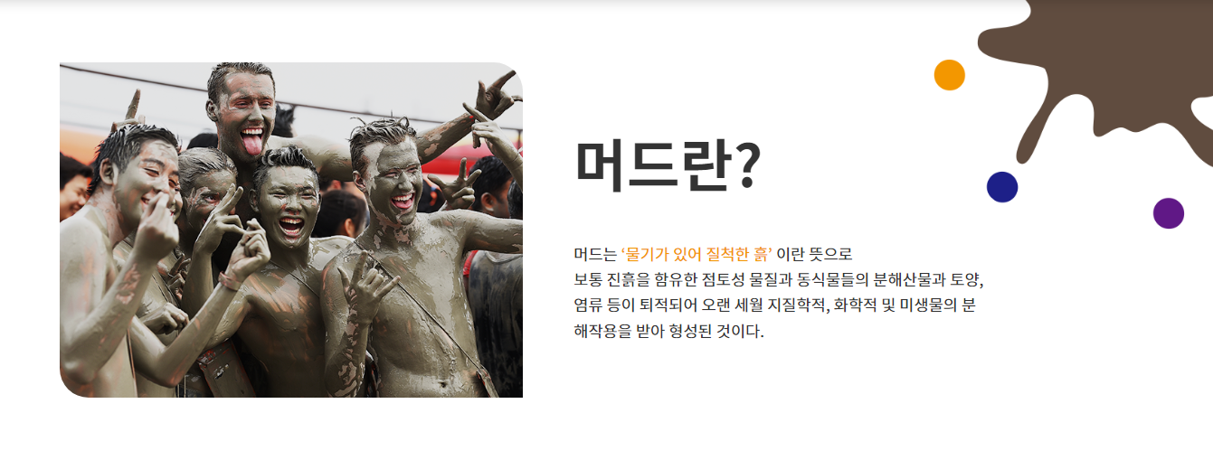 연령대와 상관없이 가면 모두가 즐거워지는 머드축제 올해 행사는 한번 참여해보면 어떨까요?