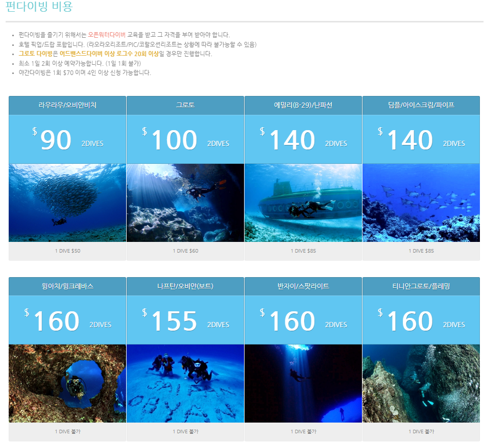 ㅁ 펀다이빙 가격표