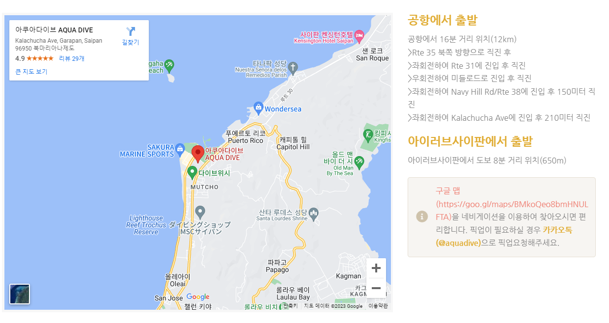 솔직히 아는분께 소개를 받아서 예약한 사이판아쿠아다이브(www.aquadive.kr) 이창복강사님과 깨톡 후