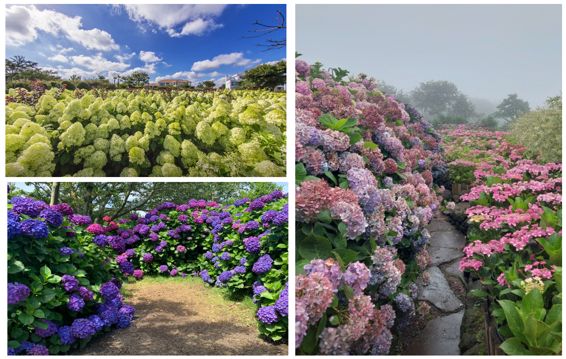 제주 마노르블랑은 최남단 제주에 있어 전국에서 가장먼저 수국을 볼 수 있는 곳입니다.  이곳의 특징은 계절마다 다른 꼭을 심어 수국이외에도 철에 따라 다양한 꽃을 만나볼수 있습니다.    산책로를 따라 준비된 포토스폿에서 예쁜 추억 많이 남기시기 바랍니다.