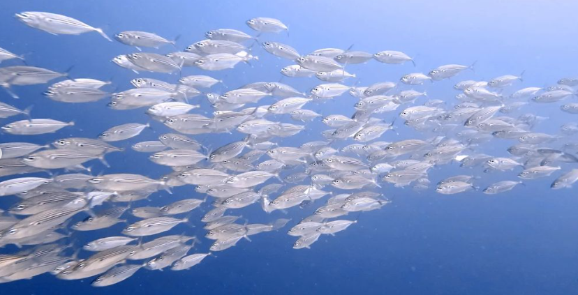 다이브로이드로  찍은 전갱이떼! 무늬가 살아 있다!!