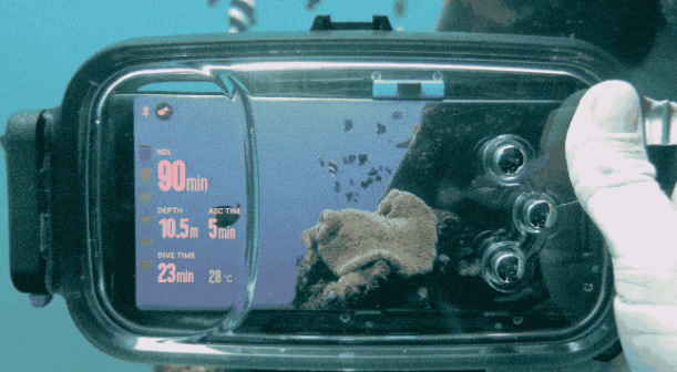 1) 다이빙 컴퓨터 + 카메라 + 로그북  기능이 스마트폰 하나로 한번에 가능하다.