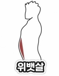 옆구리 살 - 피부탄력이 없고 살이 축 처진 경우가 많음. 잘못된 자세가 원인